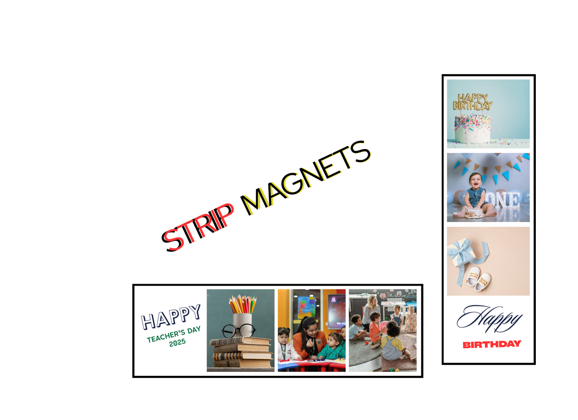 Strip Magnets offer a unique way to commemorate special events, showcasing your memories in a stylish, striped layout. Expertly designed, these magnets combine visual appeal with practicality, making them perfect for displaying cherished moments on any magnetic surface. Their striped presentation adds a modern touch, enhancing the storytelling of your favorite occasions while keeping your space organized and inviting.